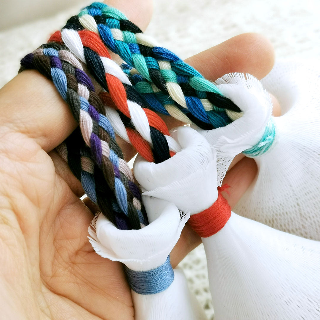 6-layer high-quality polyester net; DMC color thread & mix-color cotton string