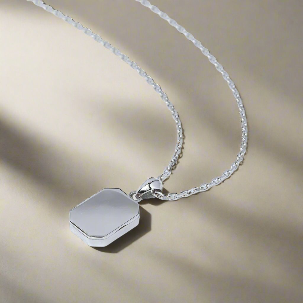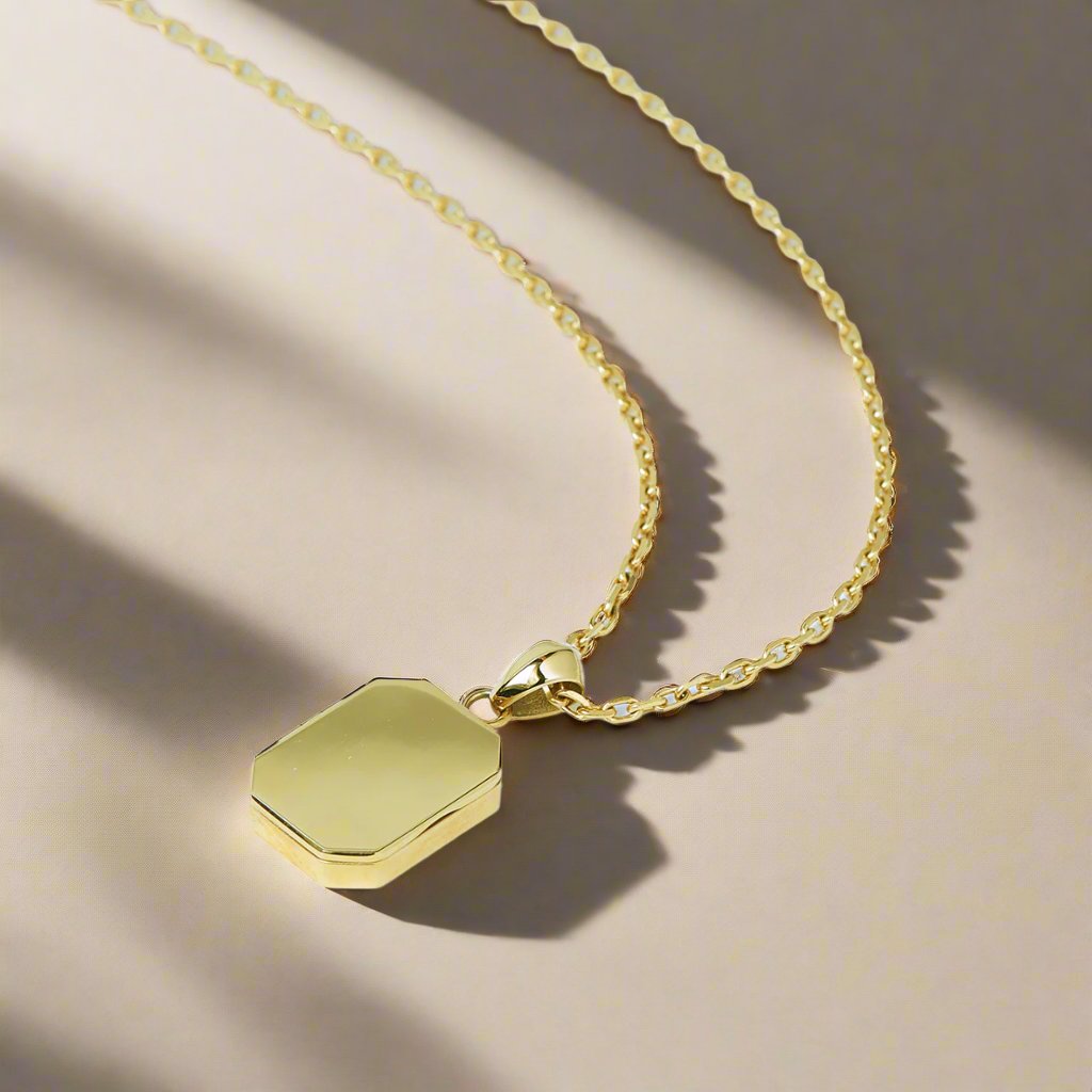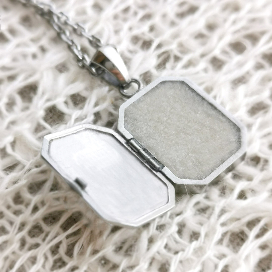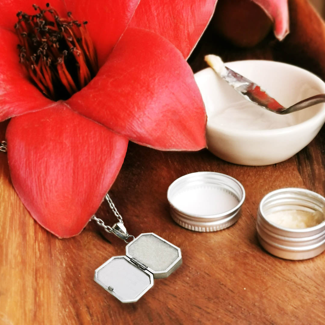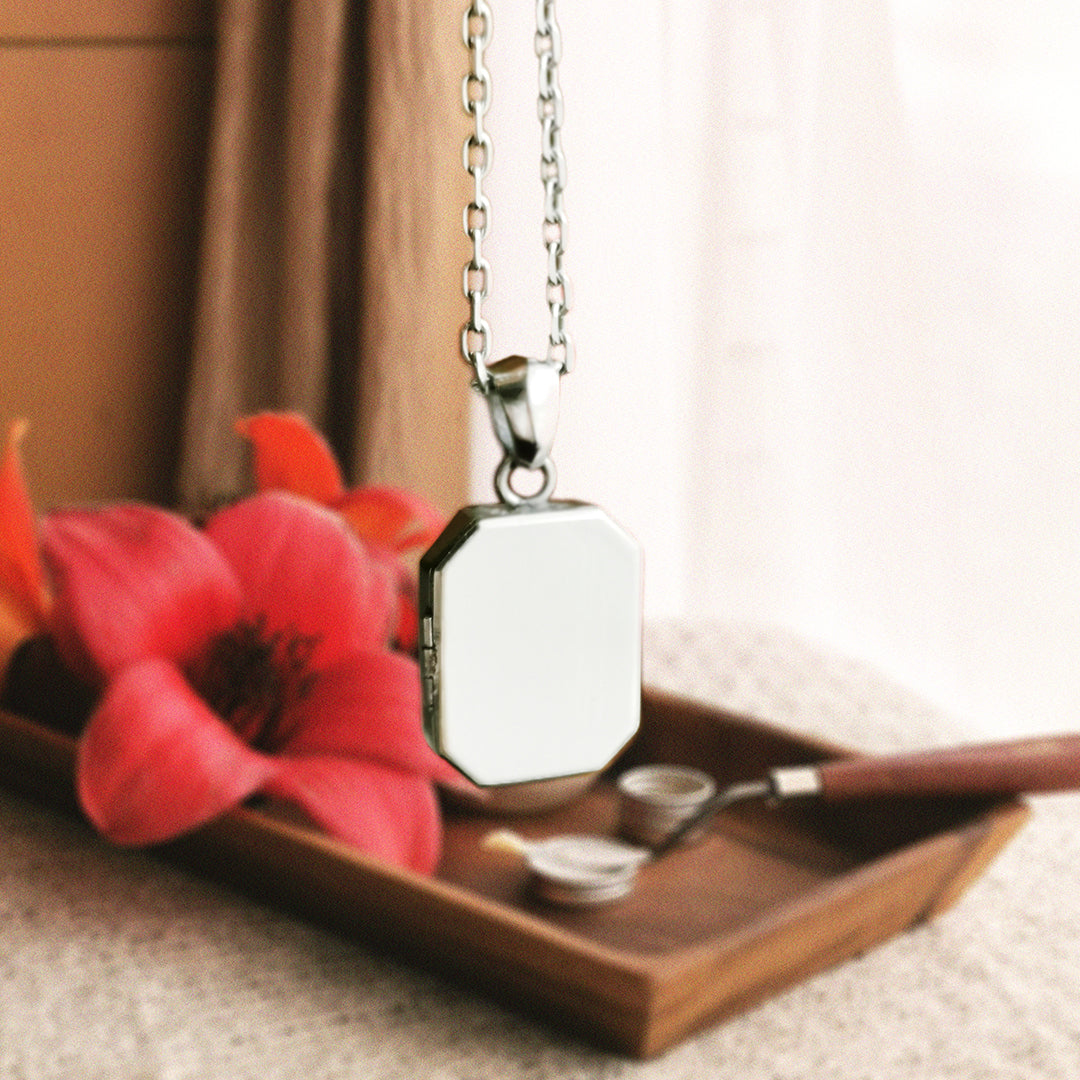 We customise this locket pendant as a fragrance carrier to wear our fragrance balm. This locket blended a classic design with a contemporary twist, the pendant features a unique rectangular hinged locket with cushion cut corners, suspended from a fine chain. Perfect for layering with dainty necklaces or wearing alone to make a statement.