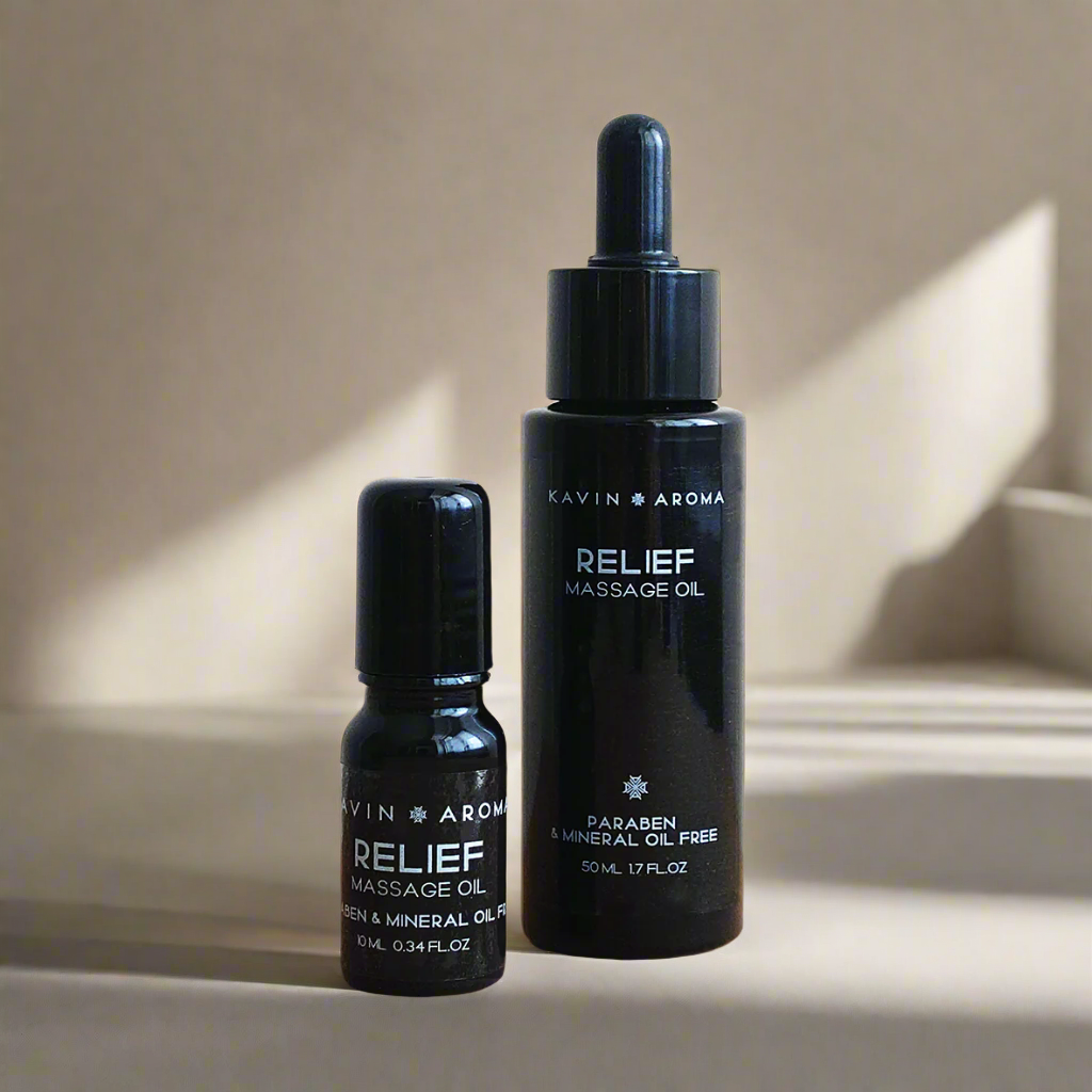 For massage, use 1 portion of RELIEF oil with 2-3 portions of your favourite base oil can stimulate your body circulation.